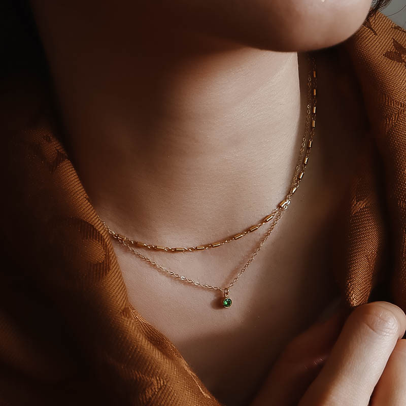 Cari 14K包金單鑽項鍊- 單鑽包鑲的經典設計,精緻不退流行, 14KGF 材質如同14K金材質可直接洗澡碰水。可與 Violet White 其它14KGF 系列款式作疊戴搭配。