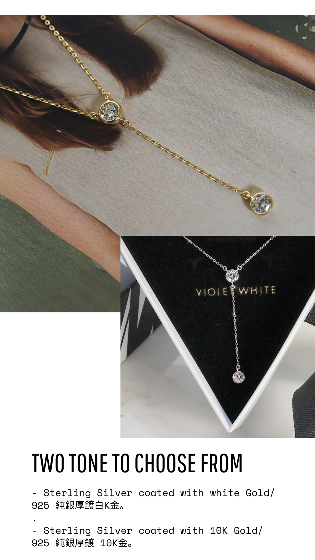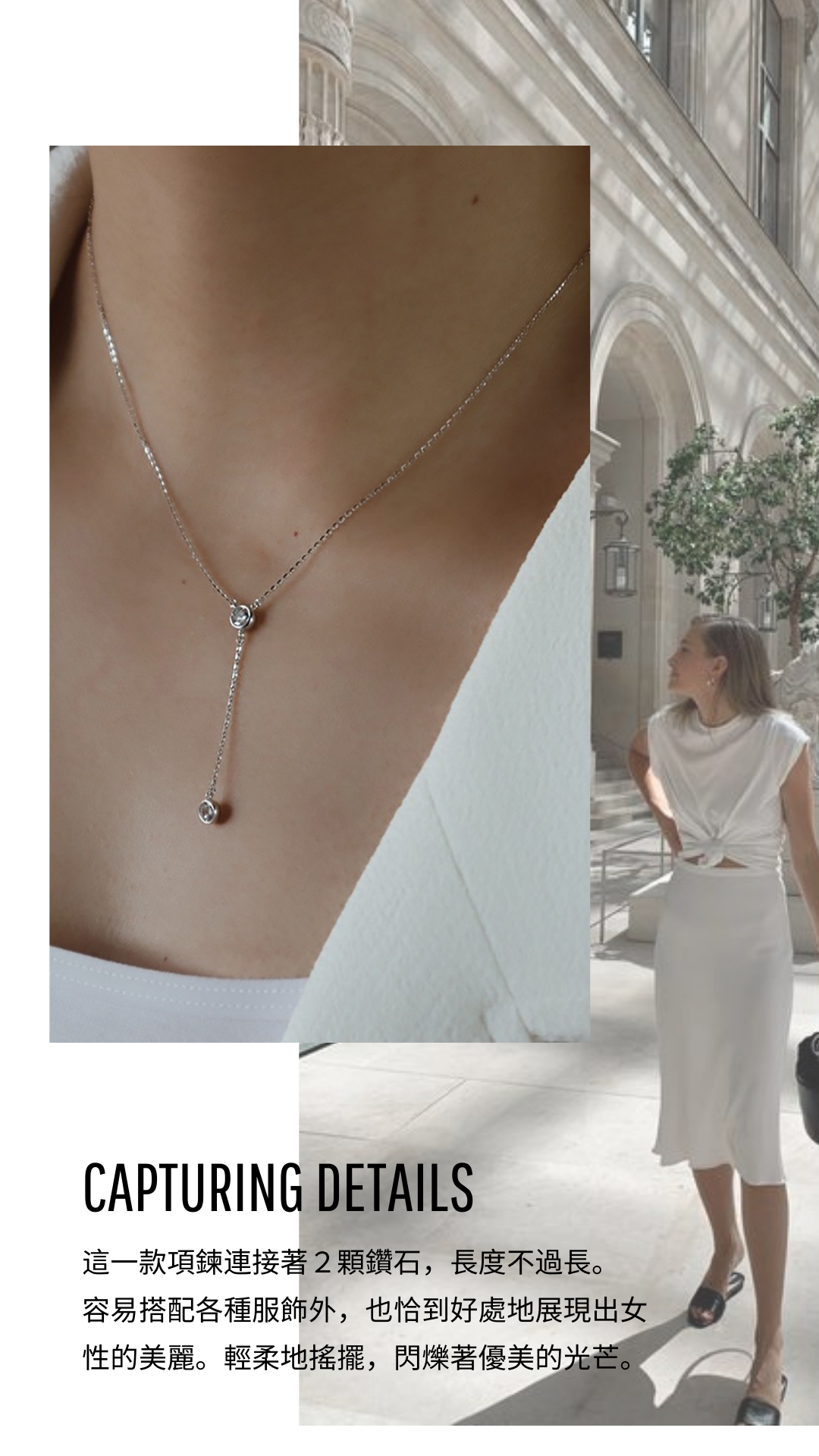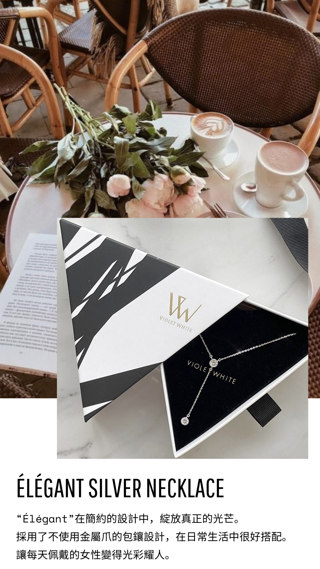 Élégant 純銀雙鑽項鍊純銀項鍊推薦-在簡約的設計中,綻放真正的光芒。採用了不使用金屬爪的包鑲設計,在日常生活中很好搭配。925 純銀搭配AAA等級鋯鑽。