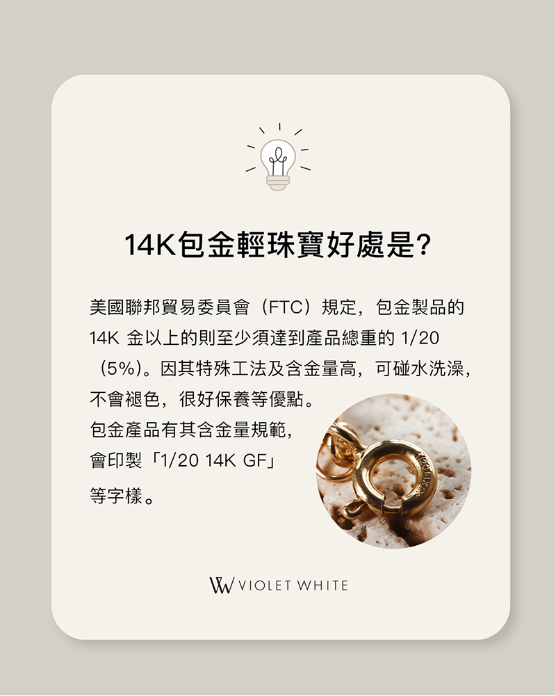 Material 材質: 14KGF 14K包金 含5%以上固態黃金