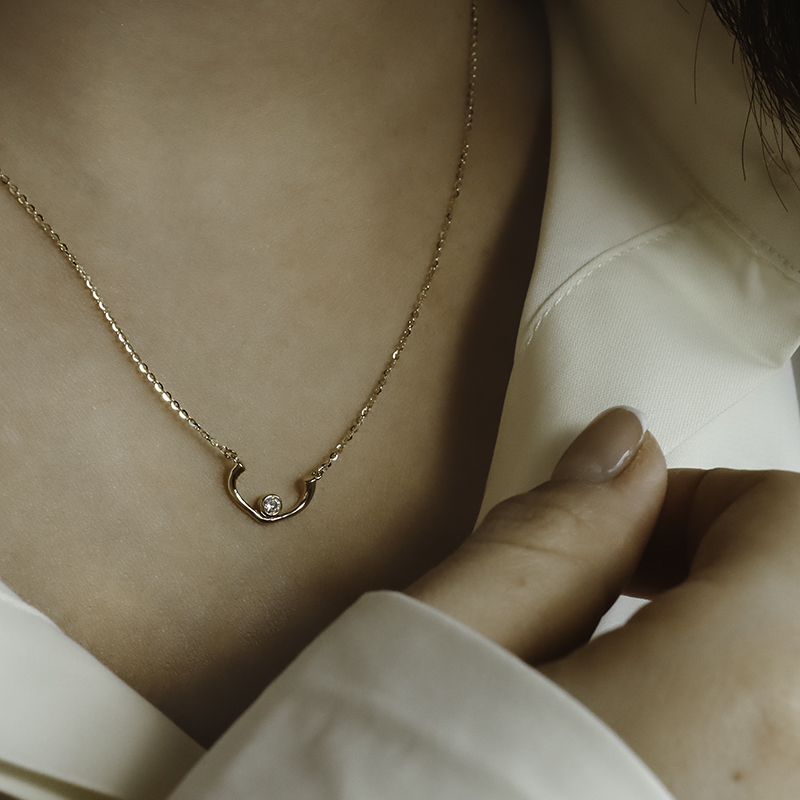 Moose 純銀鍍14K金項鍊- 925 純銀厚鍍14K金,鑲坎特A等級鋯石,90天保固。麋鹿在西方國家的傳說是森林的守護神,相傳只要見到祂,就能帶來人好運與財富。將這款小巧可愛的麋鹿角隨身戴在身上,也為妳招來滿滿的守護力和好運吧!