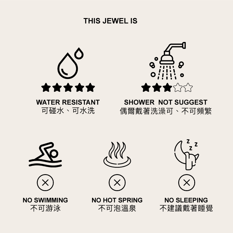 • 建議不要長期戴著純銀珠寶飾品洗澡就寢